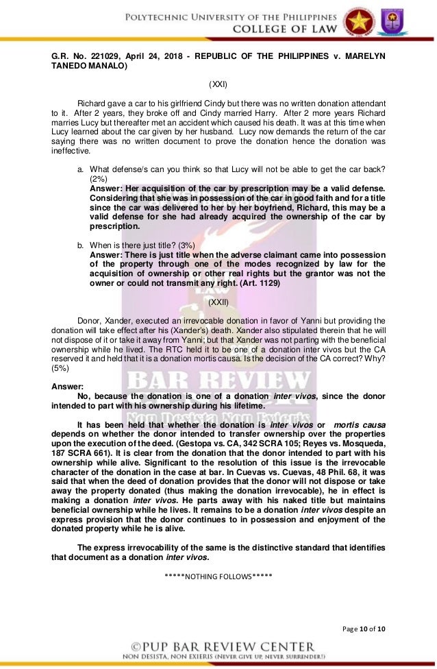April 24 2018 REACTION PAPER STATEMENT OF FACTS. Manalo then submitted the same. Share 1 Republic vs Manalo GR.